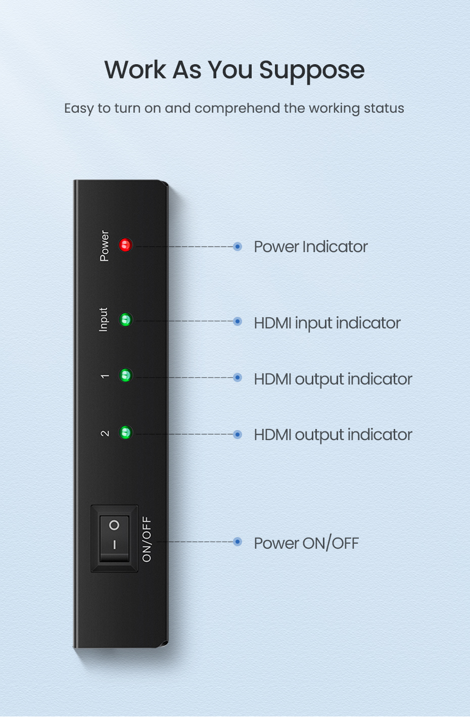 Bộ chia HDMI chính hãng Ugreen (model 40201, 40202, 40203) là sản phẩm chất lượng cao, giúp chia tín hiệu HDMI từ một nguồn phát ra nhiều màn hình mà không làm giảm chất lượng hình ảnh hay âm thanh. Với khả năng hỗ trợ độ phân giải lên đến 4K@30Hz, thiết bị mang lại trải nghiệm hình ảnh sắc nét, sống động, đáp ứng tốt cho nhu cầu trình chiếu, hội họp, giảng dạy, và giải trí. Đặc biệt, tất cả các màn hình được kết nối sẽ hiển thị cùng một nội dung, giúp đồng bộ thông tin một cách hiệu quả.