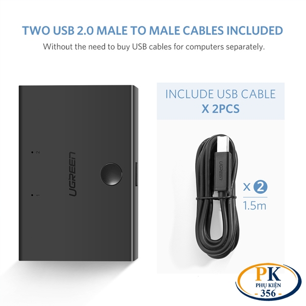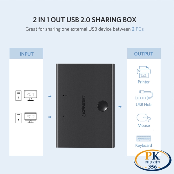 Bộ chia sẻ máy in 2 cổng Ugreen 30345 US158 giúp kết nối nhiều máy tính với một máy in duy nhất qua cổng USB 2.0. Thiết kế nhỏ gọn, màu đen sang trọng, đi kèm 2 cáp USB, giúp tiết kiệm không gian và chi phí cho văn phòng, doanh nghiệp nhỏ hoặc gia đình.