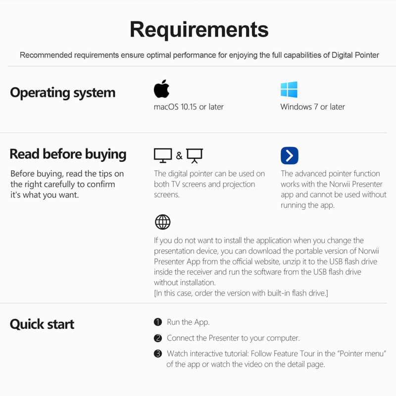 Ngoài ra, Norwii N95S BLE còn tích hợp bộ công cụ trình chiếu thông minh: lật trang, highlight, tẩy, phóng to, chuột kỹ thuật số, điều khiển âm lượng – nhạc, hỗ trợ hyperlink… giúp bài thuyết trình trở nên trực quan và chuyên nghiệp hơn.