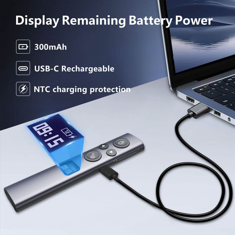 Sản phẩm sử dụng đầu thu USB Type-C hiện đại, tương thích tốt với TV, màn hình LED, laptop đời mới, không cần cài đặt phức tạp. Pin lithium polymer 300mAh cho thời gian sử dụng lên đến 120 ngày, sạc nhanh chỉ 1–2 giờ, đáp ứng nhu cầu trình chiếu liên tục.