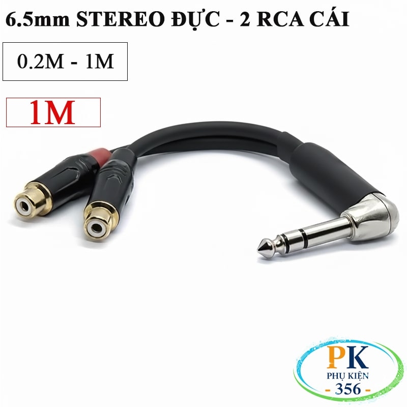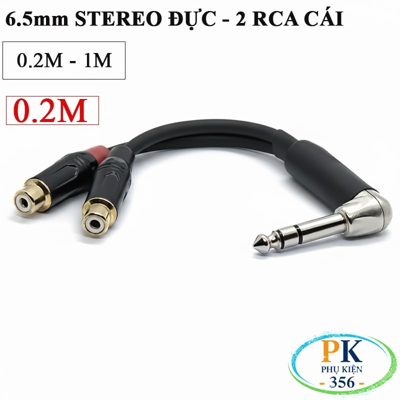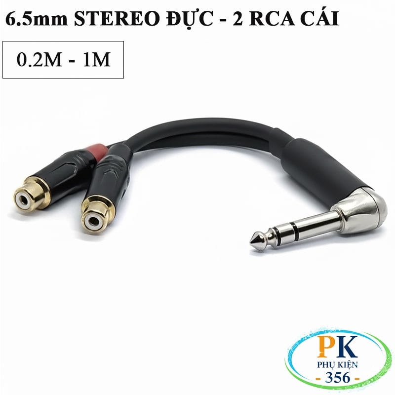 dây 6.35mm stereo ra 2 AV, cáp 6.5 ly sang 2 hoa sen, jack 6 ly ra 2 RCA cái, dây 6.35 bẻ góc chia RCA, cáp 6.3 stereo sang 2 AV