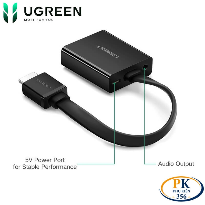 Cáp chuyển HDMI sang VGA audio full HD MM103 chính hãng Ugreen 40248 dài 20CM là phụ kiện không thể thiếu dành cho người dùng cần kết nối các thiết bị hiện đại sử dụng cổng HDMI với màn hình, máy chiếu đời cũ sử dụng cổng VGA.