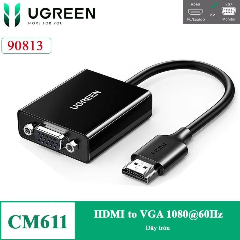 Cáp chuyển HDMI sang VGA full HD CM611 chính hãng Ugreen 90813 dài 20CM là thiết bị hữu ích giúp bạn kết nối các thiết bị hiện đại có cổng HDMI như laptop, MacBook, Chromebook, Raspberry Pi với màn hình hoặc máy chiếu sử dụng cổng VGA.