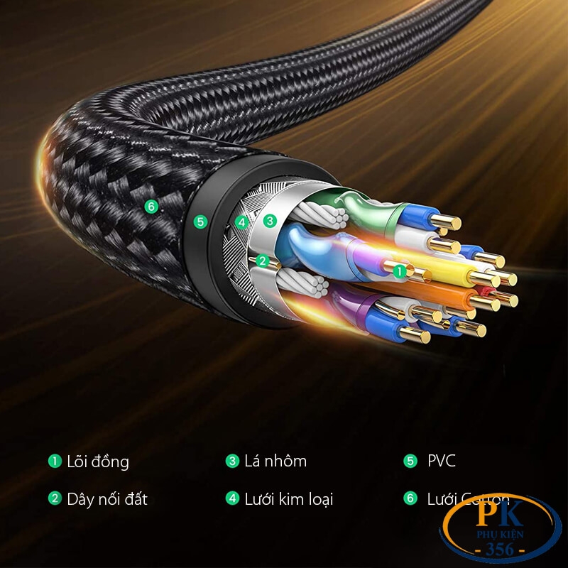 Cáp được cấu tạo từ lõi đồng 30AWG chất lượng cao, kết hợp 3 lớp chống nhiễu giúp tín hiệu luôn ổn định. Đầu cắm mạ Niken chống oxy hóa, vỏ bọc sợi cotton bền chắc và đầu jack PVC có khóa giúp tăng độ bền và kết nối chắc chắn.
