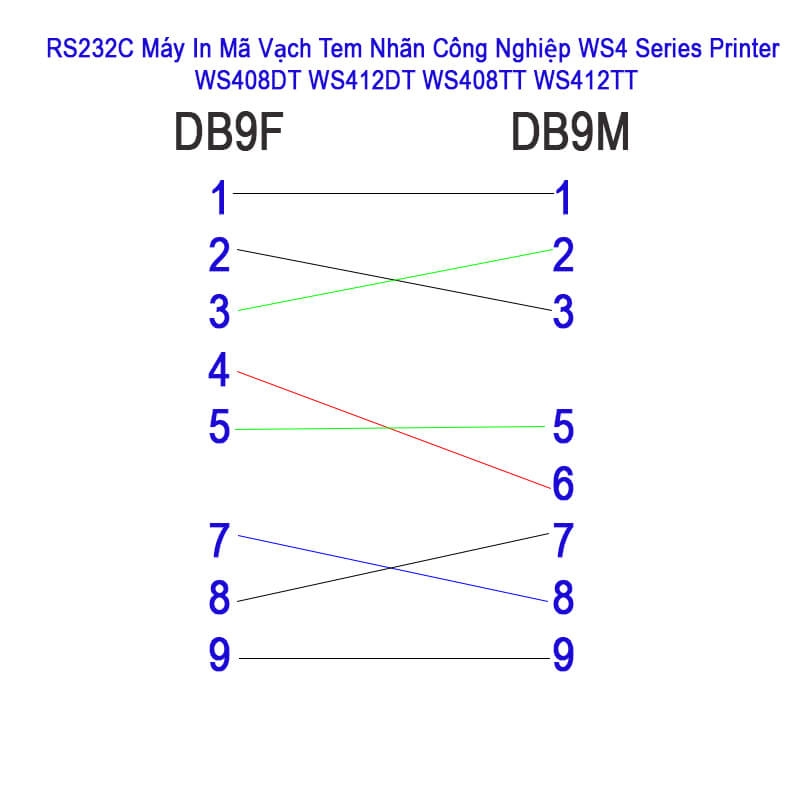 Sơ đồ Cáp RS232C DB9 dương sang DB9 âm cho máy In Mã Vạch Tem Nhãn Công Nghiệp WS4 Series
