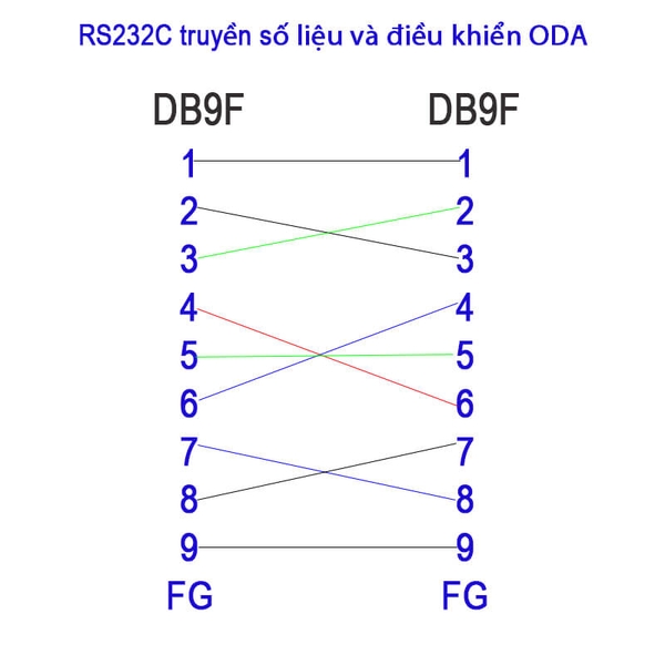 Đặc biệt, cáp RS232C DB9 female to DB9 female nối chéo đọc và điều khiển ODA dài 1M–30M được đấu nối theo tiêu chuẩn chéo với sơ đồ pin đầy đủ (2-3, 3-2, 5-5, 7-8, 8-7...), giúp đảm bảo tương thích cao với nhiều thiết bị RS232.