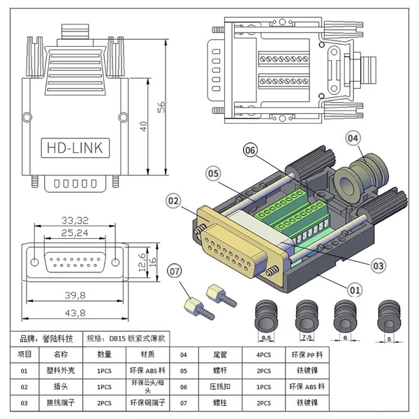 Đầu bấm COM DB15 chân đồng chính hãng HD-Link Male YL-SCD-15M Female YL-SCD-15F