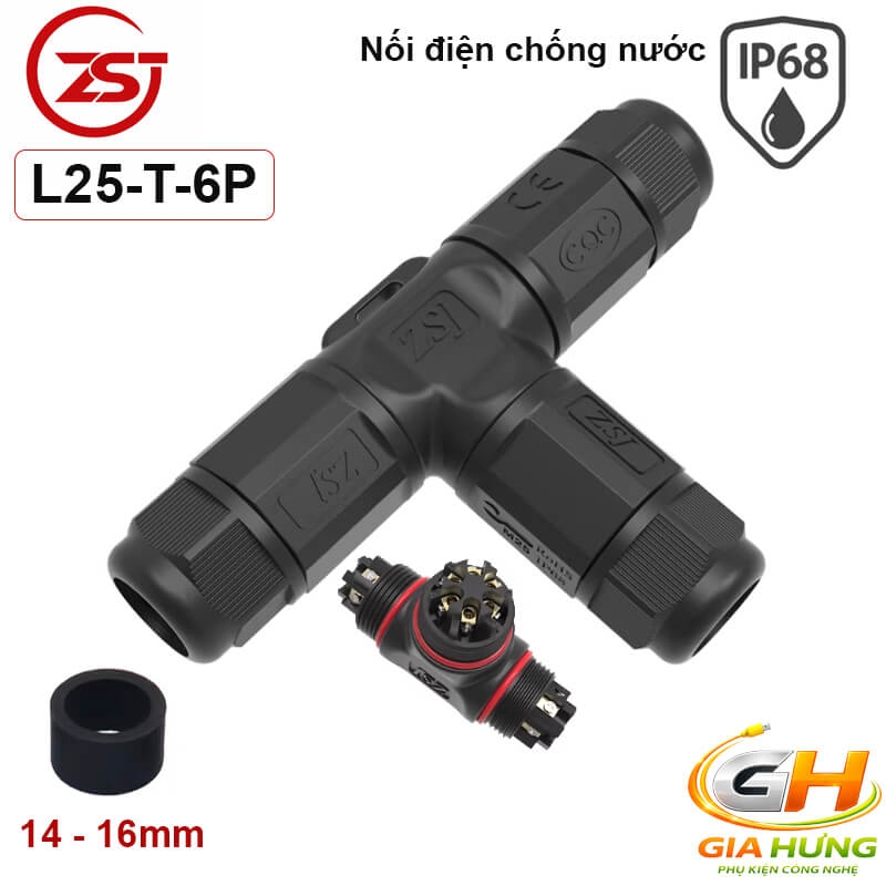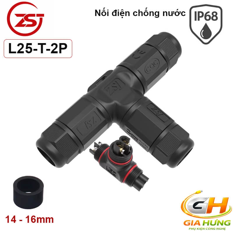 Đầu cút chia dây điện chống nước IP68 3 ngả chữ T chính hãng ZSJ L25-T, dùng cho dây điện 2, 3, 4, 5 lõi tiết diện đến 4.5mm². Sản phẩm chống nước, chống bụi tuyệt đối, chịu tải và điện áp cao, phù hợp cho các hệ thống điện ngoài trời và công nghiệp.