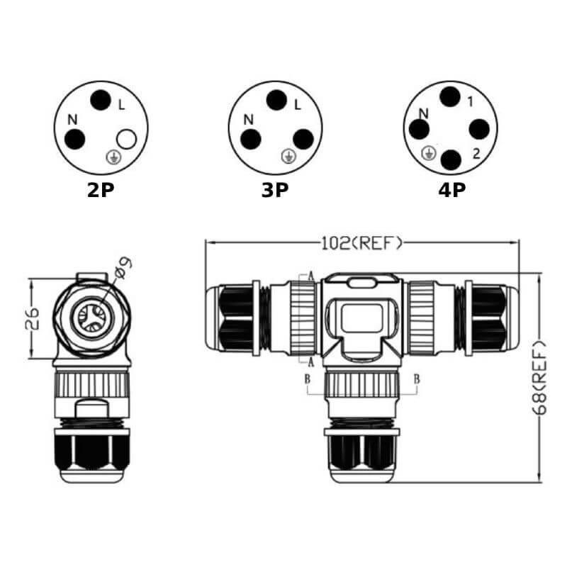 Đầu nối chia dây điện chữ T Eweichat EW-M20T được thiết kế chuyên dụng cho các hệ thống điện cần chia nhánh nguồn trong môi trường ngoài trời hoặc khu vực ẩm ướt. Với chuẩn chống nước IP68, sản phẩm giúp bảo vệ mối nối khỏi bụi bẩn, nước mưa và độ ẩm cao, đảm bảo an toàn điện và độ bền lâu dài.