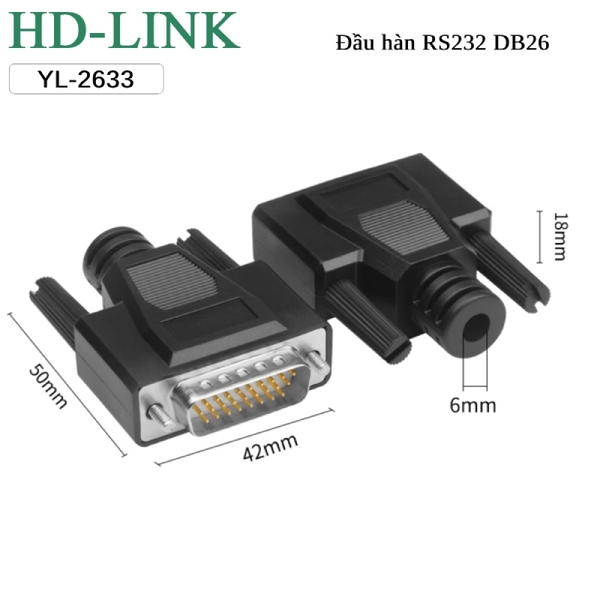 Đầu hàn DB26 đực chân đồng vỏ nhựa dẻo HD-Link YL-2633M là giải pháp kết nối chất lượng cao, được thiết kế với 26 chân bằng đồng nguyên chất, đảm bảo khả năng truyền tín hiệu ổn định và chống ăn mòn. Vỏ nhựa dẻo bền bỉ giúp sản phẩm chịu lực tốt và phù hợp với nhiều môi trường làm việc khác nhau. Đây là lựa chọn lý tưởng cho các ứng dụng trong hệ thống máy tính, viễn thông, công nghiệp và âm thanh chuyên nghiệp.