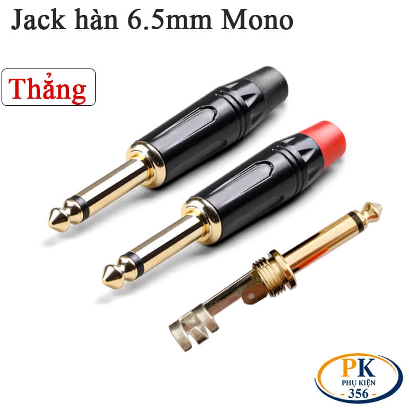 Đầu hàn jack 6.5mm mono (TS) dạng jack thẳng, lõi đồng mạ vàng, vỏ kim loại bền bỉ. Hỗ trợ cáp 3–6mm, truyền tín hiệu âm thanh ổn định, phù hợp guitar, ampli, mixer và thiết bị âm thanh.