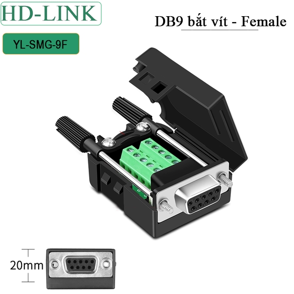 Đầu jack COM DB9 cái không hàn chân bắt vit HD-Link YL-SMG-9F - Female