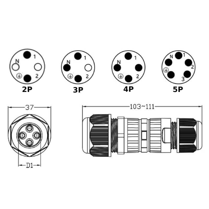Vỏ nhựa PA66 chịu nhiệt, lõi hợp kim đồng mạ niken giúp tăng khả năng dẫn điện, hạn chế oxy hóa và nâng cao tuổi thọ sử dụng. Kiểu kết nối bằng vít chắc chắn, dễ lắp đặt, phù hợp cho nhiều loại cáp điện khác nhau. EW-M25-3T hỗ trợ đa dạng số lõi từ 2 đến 5 lõi, đáp ứng linh hoạt cho nhiều ứng dụng thực tế.