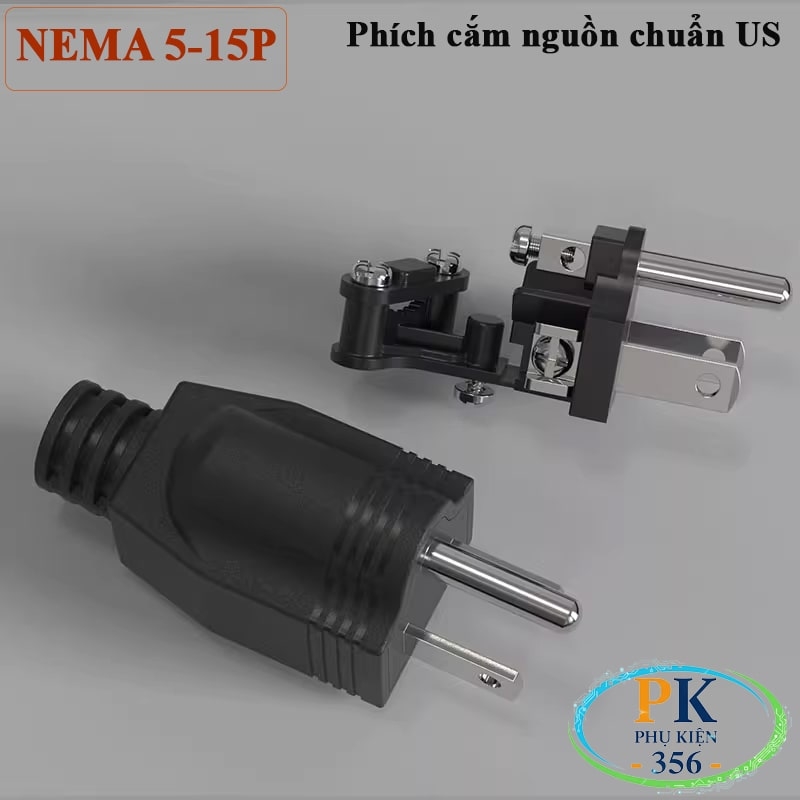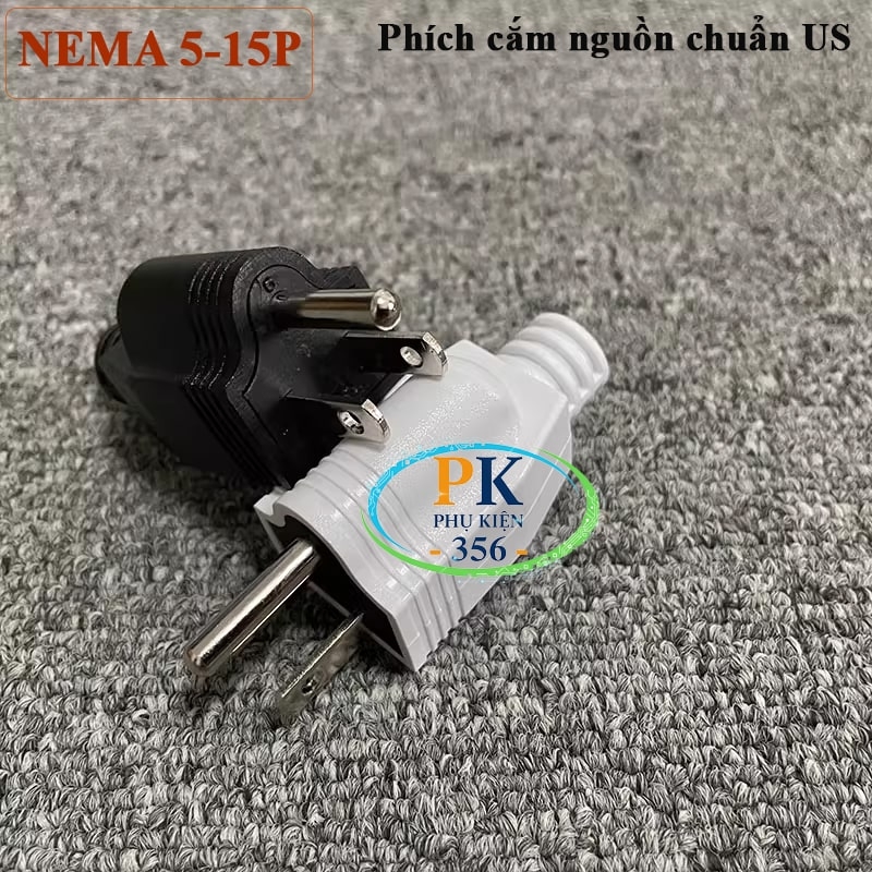 Đầu phích cắm nguồn 3 chấu US NEMA 5-15P 250V/10A tại phukien356.com – Dùng cho UPS, máy tính, adapter, thiết bị điện văn phòng. Chân cắm chắc chắn, an toàn, chống cháy, thay thế linh hoạt, chuẩn Mỹ.