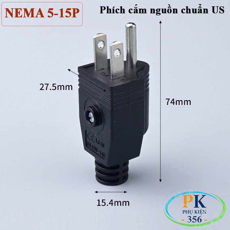 Tiêu chuẩn NEMA 5-15P (US): Phù hợp điện áp 125V, dòng tải tối đa 15A, tương thích điện áp 220V/10A.