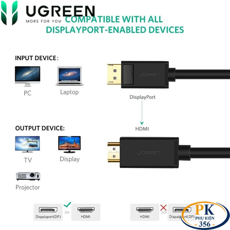 dây cáp chuyển Displayport sang HDMI 1.4 4K@30Hz DP101 chính hãng Ugreen, cáp DisplayPort sang HDMI Ugreen DP101, cáp DP to HDMI 4K 30Hz, cáp chuyển DisplayPort sang HDMI giá rẻ, cáp DisplayPort Ugreen 10238 10239 10202 10203 10204
