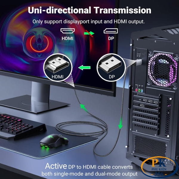 Lưu ý: Cáp chỉ truyền tín hiệu một chiều từ DisplayPort → HDMI, không sử dụng ngược lại.
