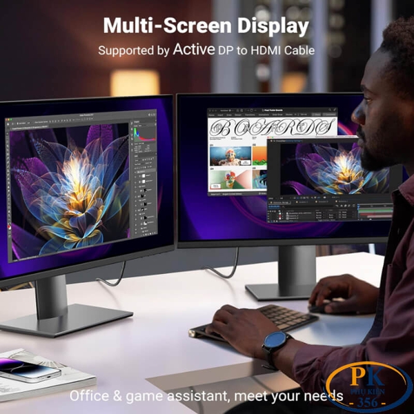 Là dòng cáp Active, cáp DisplayPort sang HDMI Ugreen DP119 hỗ trợ công nghệ AMD Eyefinity, cho phép kết nối nhiều màn hình cùng lúc (lên đến 6 màn hình), giúp mở rộng không gian làm việc hiệu quả.