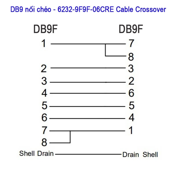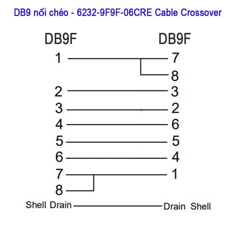 Sơ đồ cáp DB9 nối chéo RS232C 2 đầu âm 99FF80 Cross