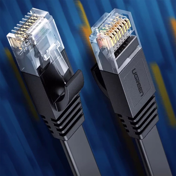 Dây cáp mạng RJ45 CAT6 1Gb 250Mhz Ugreen 50178 dây dẹt màu đen dài 10M hỗ trợ tốc độ 1000Mbps, băng thông 250MHz, đảm bảo kết nối ổn định cho máy tính, router, switch và camera IP. Với đầu cắm RJ45 mạ vàng và cấu trúc chữ thập chống nhiễu, sản phẩm phù hợp cho gia đình, văn phòng, hệ thống mạng LAN.