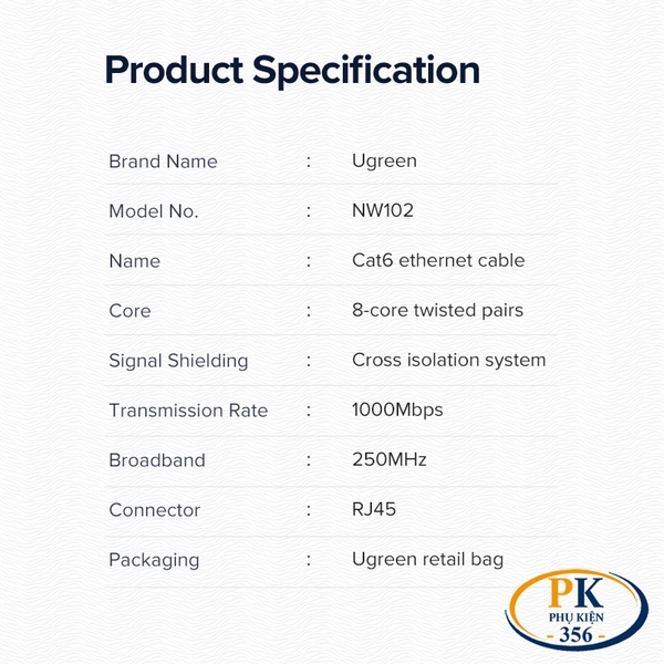Với thiết kế bền bỉ, hiệu suất cao và chất lượng được kiểm định, dây cáp mạng RJ45 CAT6 UTP Ugreen 20167 NW103 dài 25M là lựa chọn hoàn hảo cho mọi nhu cầu kết nối mạng!