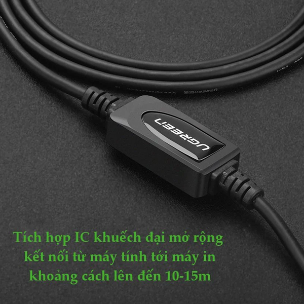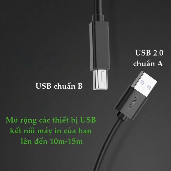 Dây cáp máy in USB 2.0 BM Ugreen US122 – Dài 10M, 15M, có chip khuếch đại, giá rẻ, chất lượng cao