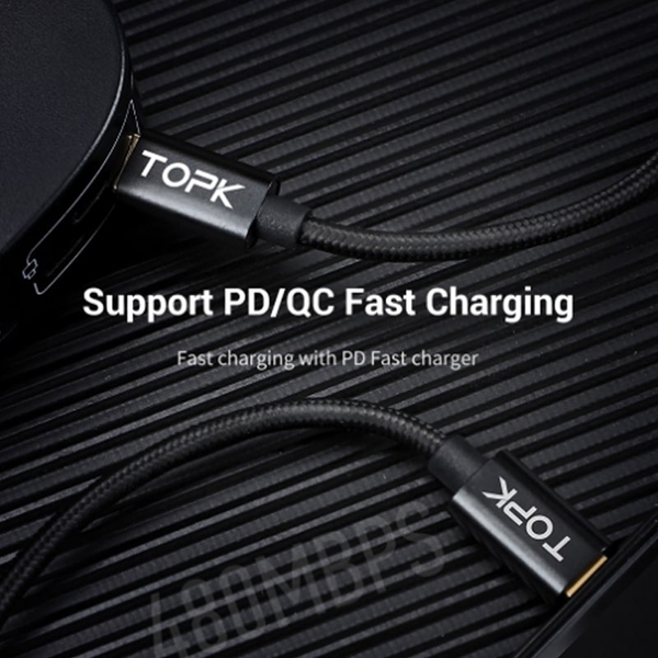 Cáp sạc nhanh TOPK tương thích hoàn hảo với hầu hết các thiết bị sử dụng cổng sạc Lightning như Iphong, Ipad ...