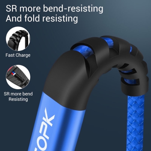 Một số hình ảnh : Dây cáp sạc nhanh Lightning TOPK dài 1M – Dây Bọc Vải, Đầu Mạ Vàng có đèn báo