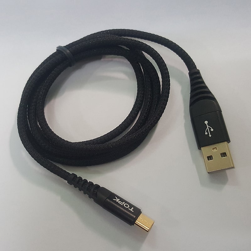 Dây cáp sạc nhanh QC3.0 TOPK USB-C dây bọc dù chống đứt gãy. Hỗ trợ công suất 40W, truyền dữ liệu 480Mbps. Dây bọc vải chống đứt, đầu cắm USB Type-A sang Type-C mạ vàng, tương thích điện thoại Samsung, Xiaomi, Huawei, Sony...