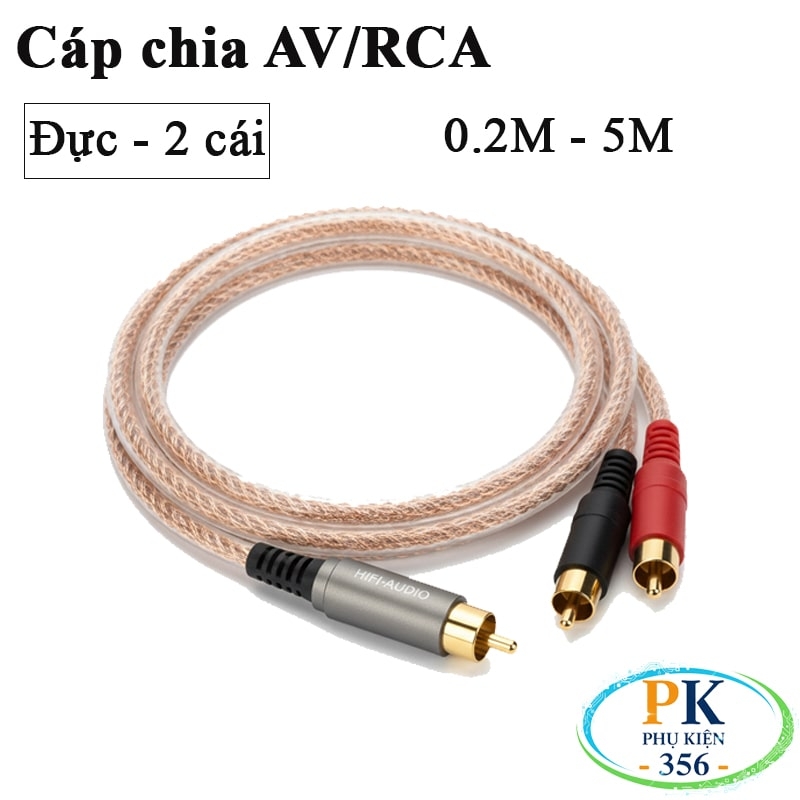 Cáp chia AV/RCA đực sang 2 cái DIY, chiều dài 0.2m – 3m. Dây Sunrise Đài Loan, lõi đồng OFC 4N, jack mạ vàng 24K, âm thanh trung thực, ổn định. Liên hệ 0347.696.356 để đặt hàng.