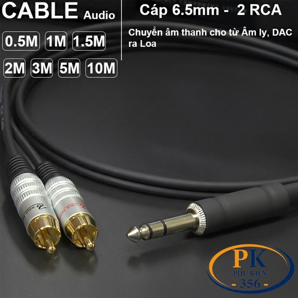 Đầu kết nối: 6.35mm stereo đực (male) → 2 AV RCA đực (male)
