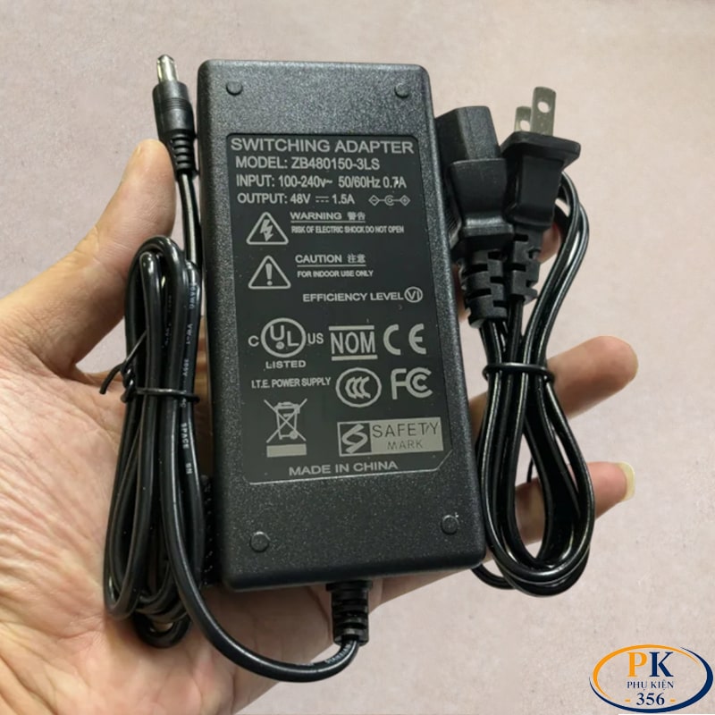 Nguồn DC Adapter 48V-1.5A 72W ZB480150-3LS cung cấp điện áp 48V ổn định, có đèn báo nguồn, dây C13 dài 1m, đầu DC 5.5×2.5mm. Phù hợp dùng cho switch, camera IP, converter, thiết bị công nghiệp. Hiệu suất cao, hoạt động bền bỉ, đạt chuẩn an toàn quốc tế.