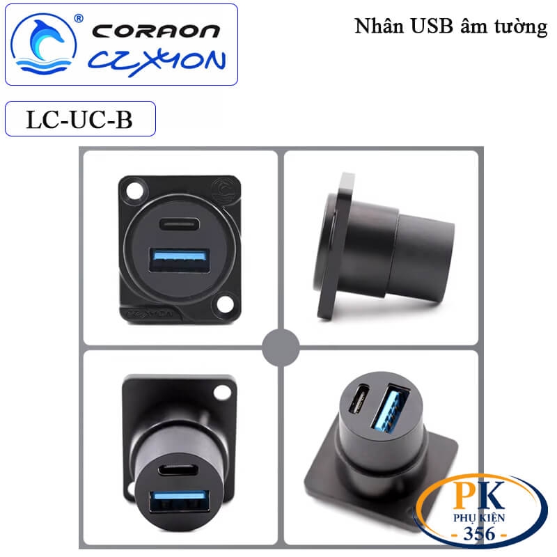 Nhân nối USB 3.0 type C âm tường Coraon LC-UC-B màu đen và LC-UC-W màu bạc có 2 cổng USB 3.0 và type C được thiết kế chuyên dụng cho các hệ thống cần bố trí cổng USB cố định như tủ điện, máy móc công nghiệp, bàn làm việc, hộp kỹ thuật hay lắp âm tường.