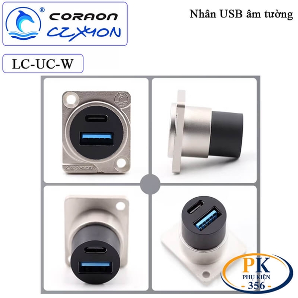 Nhân nối USB 3.0 âm tường Coraon LC-UC-B và LC-UC-W là giải pháp hoàn hảo để tạo cổng USB 3.0 và USB type C chờ trên mặt máy, hộp kỹ thuật, mặt bàn hoặc âm tường. Sản phẩm sử dụng chất liệu kim loại sơn tĩnh điện cao cấp, thiết kế chắc chắn, thẩm mỹ cao, hỗ trợ tốc độ truyền tải lên đến 5Gbps, đáp ứng tốt nhu cầu kết nối USB 3.0 ổn định và chuyên nghiệp.