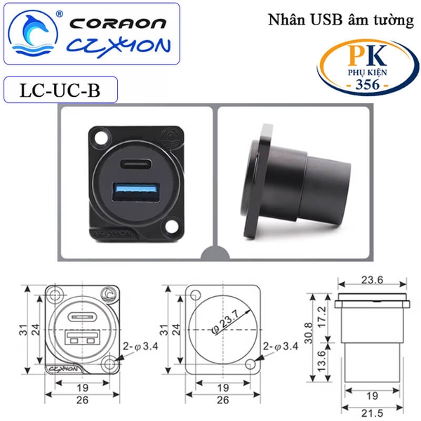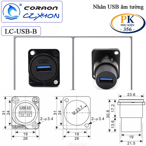 nhân nối usb 3.0 âm tường, cổng usb chờ, nhân usb 3.0 lắp mặt máy, coraon lc-usb-b, ổ cắm usb âm tường, cổng usb mặt bàn, nhân usb kim loại